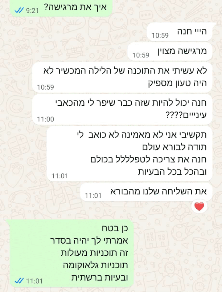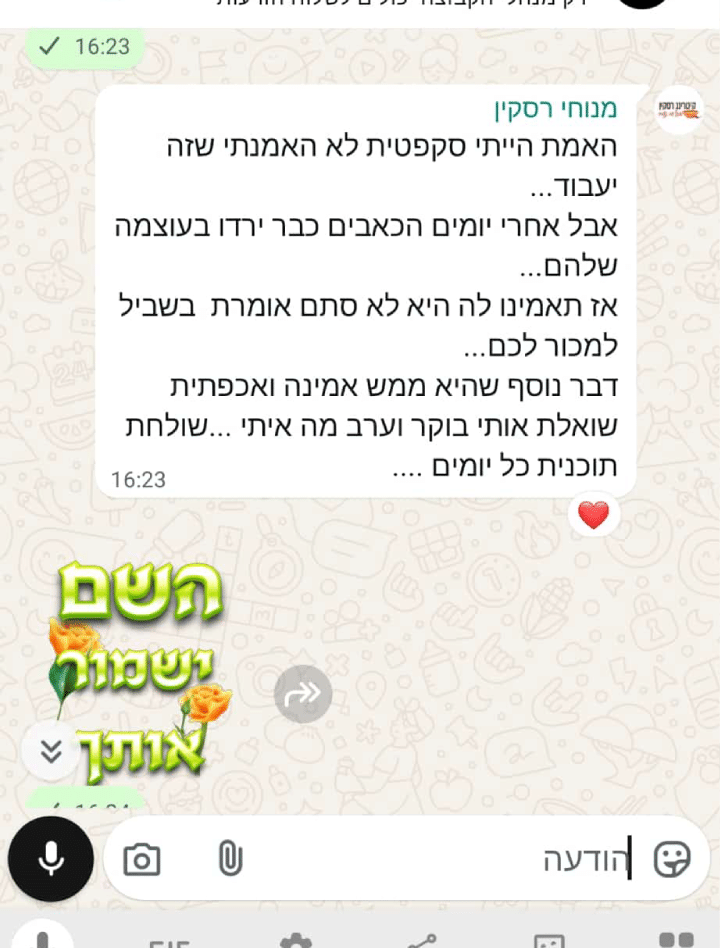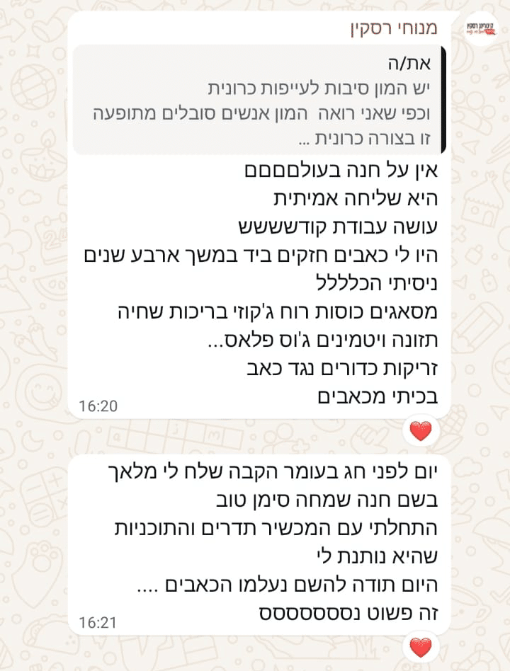 המטרה בטיפול היא ריפוי מהשורש, לא הקלה רגעית, ולכן נדרשת התמדה, פתיחות והקשבה לגוף – עם תמיכה וליווי צמוד לאורך כל הדרך.